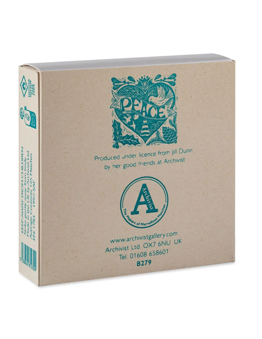 Préparez-vous à être enchanté par la toute dernière membre de la famille Archivist : Jill Dunn ! Inspirée par la beauté à couper le souffle de son Cornwall natal, l’œuvre de Jill est une véritable déclaration d’amour au monde naturel, sublimée par l’art de la gravure en relief. Son style plein de fantaisie insuffle une vie nouvelle à chaque création. La boîte d’allumettes « Peace », initialement réalisée en linogravure, est un délice visuel et constitue le complément parfait à notre collection de boîtes d’allumettes carrées. Rejoignez-nous pour accueillir Jill Dunn et ses designs joyeux au sein de la famille Archivist !