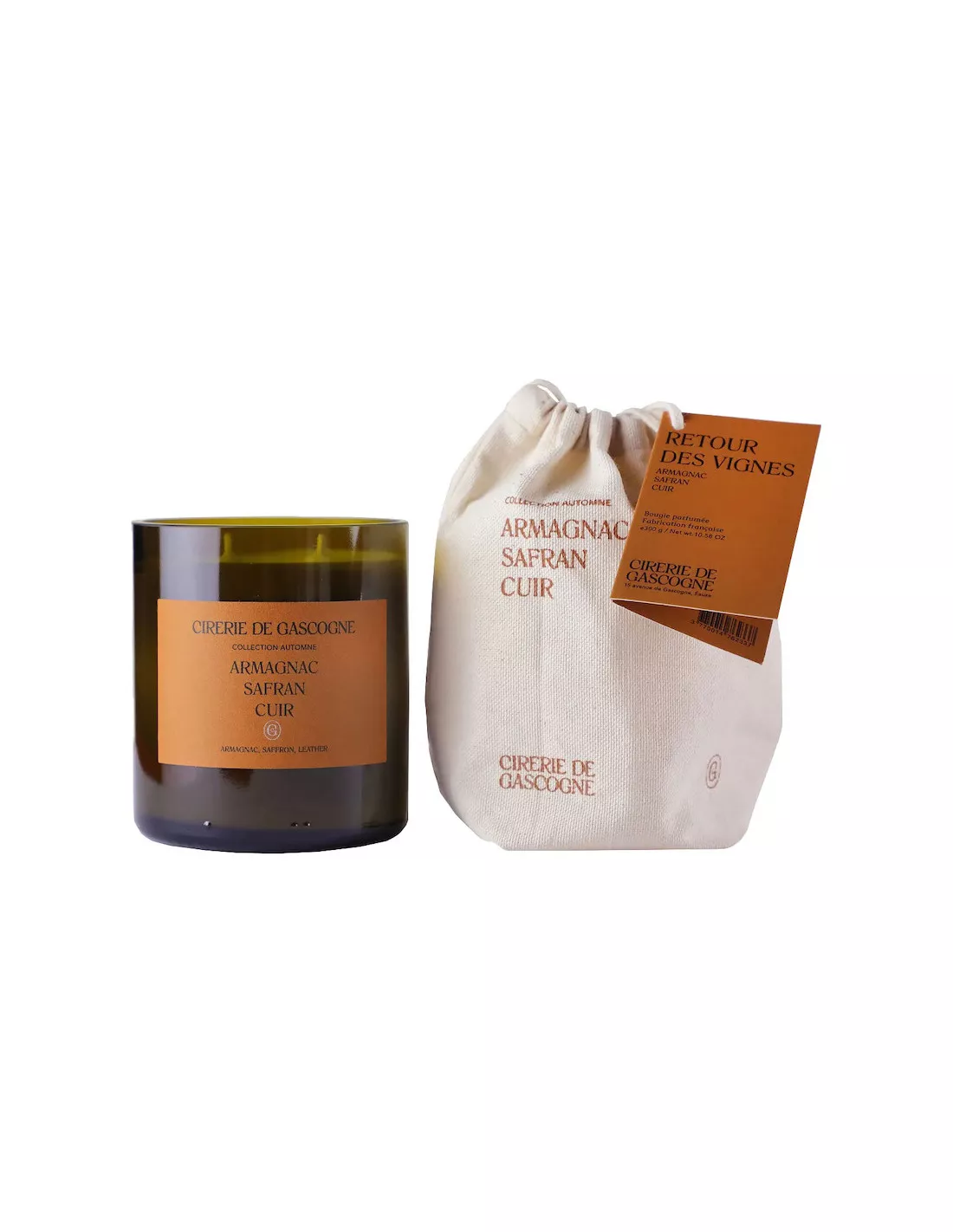 A propos du parfum : Les essences utilisées ici sont chaudes, sucrées et épicées. Dans cette bougie on distingue facilement l’Armagnac, soutenu par les notes épicées du safran. L’ensemble est associé au cuir dans des notes de fond plus masculines.