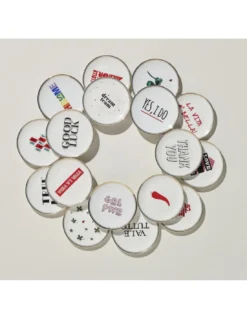 Bitossi Home Good Luck Assiette Déco 17cm – Porcelaine Blanche, Motif Lèvres Rouges et Liseré Or
