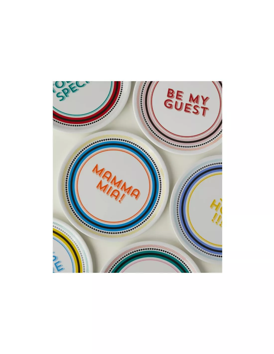 Cette grande assiette de 32 cm en porcelaine fine se distingue par son design vibrant et son message accueillant, idéal pour partager le plat italien le plus célèbre. Avec ses couleurs chaudes et sa typographie rétro, elle incarne parfaitement le mélange entre tradition artisanale et modernité pop propre à la célèbre maison de céramique italienne.