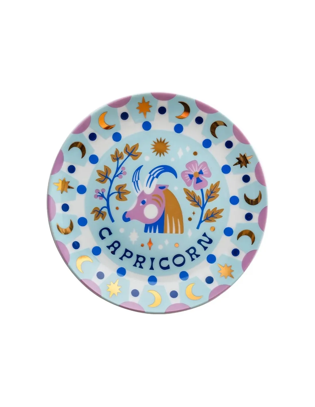 Visuellement saisissante, cette assiette de 16 cm se distingue par son fond en porcelaine d’un blanc immaculé, encadré par un liseré doré raffiné. Au centre, l’illustration du Capricorne est magnifiquement exécutée avec des détails noirs et dorés, créant un contraste sophistiqué et une esthétique vintage céleste unique.