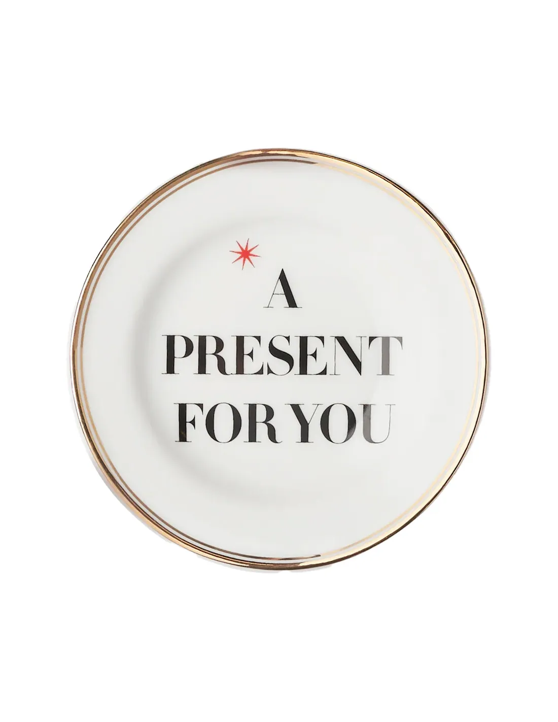 Conçue en porcelaine de haute qualité, cette assiette de 9,5 cm se distingue par son design épuré et sophistiqué. Sur un fond blanc immaculé, une inscription calligraphiée dorée « A Present for You » est accompagnée d’un motif de ruban délicat, réalisé avec des détails à l’or fin. Sa finition lisse et brillante capte la lumière, ajoutant un luxe discret à votre décoration intérieure.