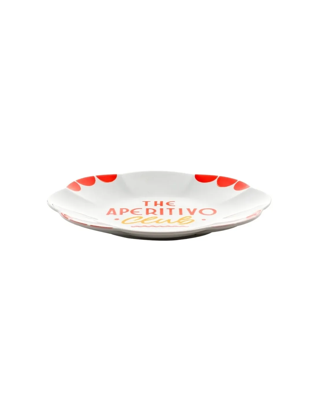 Conçu en céramique de haute qualité, ce plat se distingue par sa base d’un blanc pur contrastée par un liseré rouge vif et le lettrage typographique emblématique « THE CLUB » au centre. Sa finition brillante et ses lignes épurées capturent l’esprit chic et vintage de l’art de vivre à l’italienne.