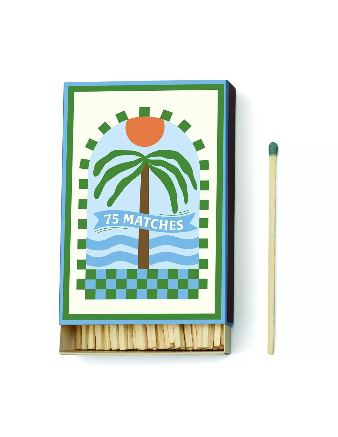 Cette boîte d’allumettes arbore un fini vert foncé profond orné d’un motif palmier élégant, directement inspiré par l’esthétique de la collection Adopo. Sa conception soignée permet d’allumer vos bougies en toute sécurité, même les mèches les plus profondes, sans risque de brûlure.