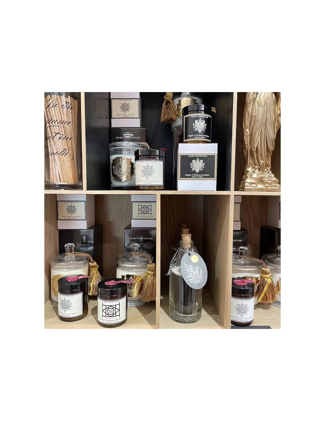 Les bougies Secret d’Apothicaire sont produites artisanalement en Normandie dans la grande tradition des maîtres ciriers d’autrefois, 100% cire de soja et d’abeille, elles sont mélangées à des parfums aromatiques de Grasse. Elles sont présentées dans des pommadiers officinaux en verre brun d’époque Victorienne.