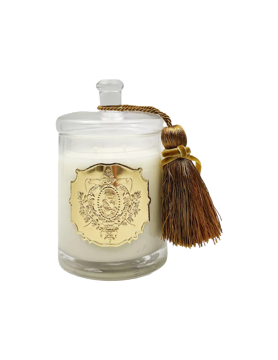 La bougie parfumée L’Apothicaire fait partie de la collection « Apothicaire ». Cette magnifique bonbonnière tout en sobriété, revêtue d’un blason en étain et d’un pompon doré, trouvera à coup sûr une place de choix dans toutes les pièces de votre maison.