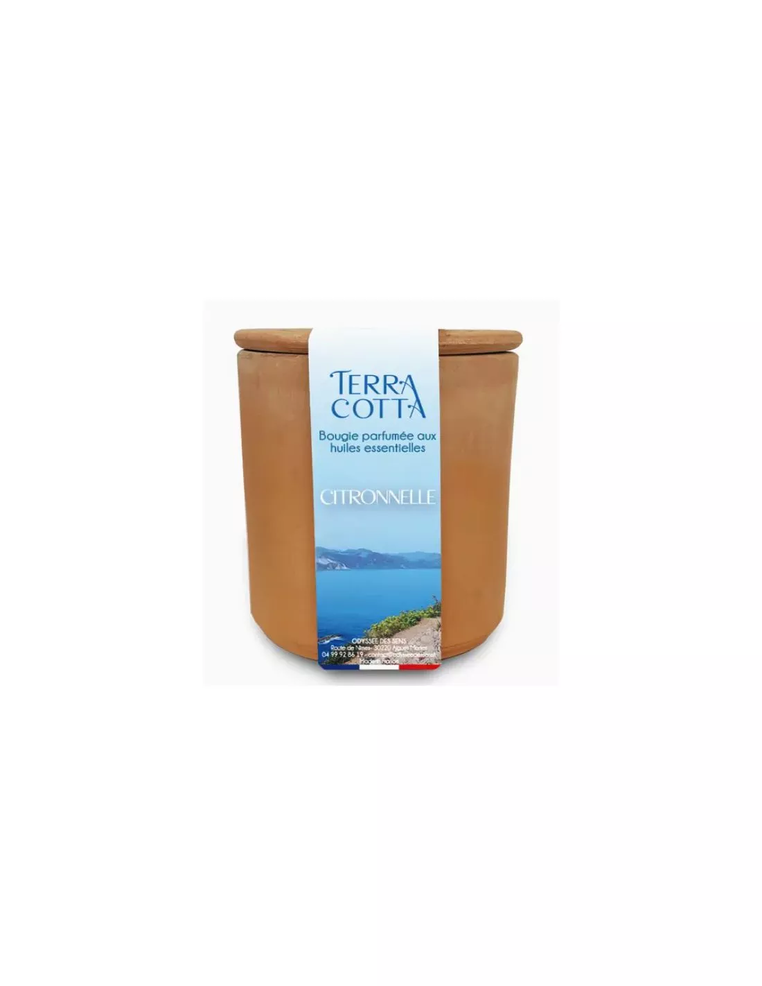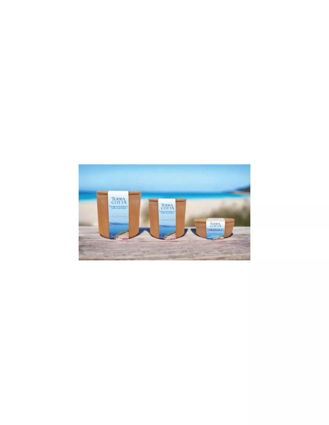 Les bougies d’extérieur à la citronnelle sont coulées dans un pot artisanal en terre cuite