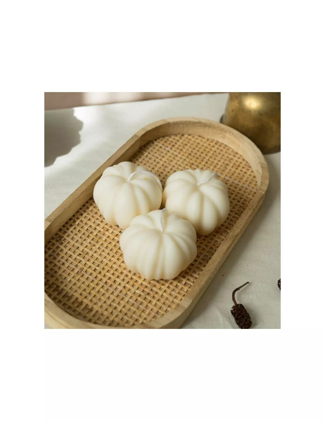 D’une teinte Crème pure et apaisante, cette bougie en forme de citrouille est moulée à la main dans l’atelier de Leaves & Co. Sa texture douce et ses courbes délicates en font un objet de design floral et féminin incontournable pour la saison.