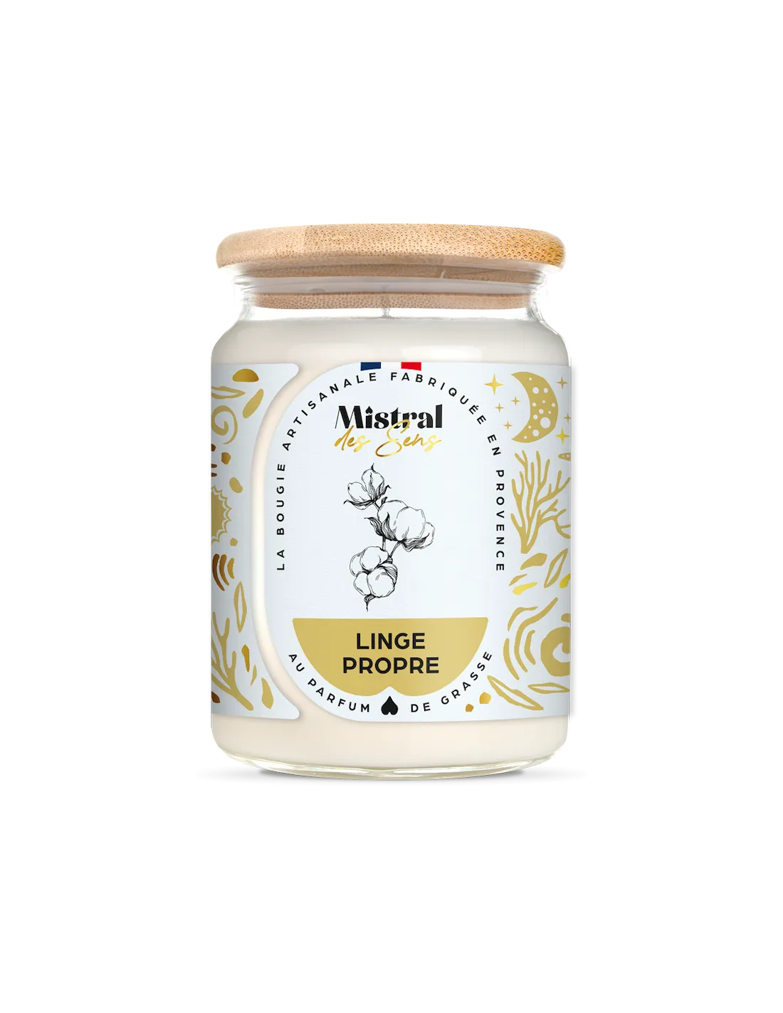 Les bougies parfumées Mistral des Sens sont toutes composées d’une cire de soja, d’une mèche sans plomb le tout coulé dans un verre recyclable et réutilisable, avec un capuchon en bambou.