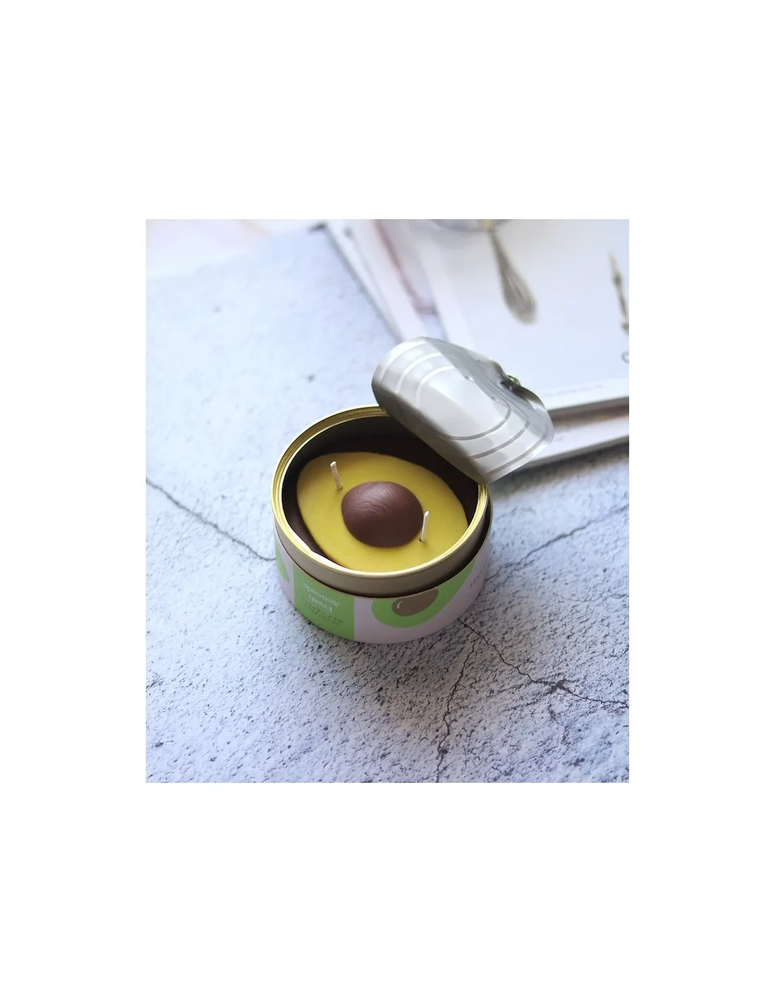 Apportez une touche d’originalité fruitée et de modernité à votre intérieur avec la bougie CandleCan Avocat. Conçue pour surprendre, cette bougie artisanale reprend l’apparence saisissante d’un avocat mûr, créant un effet trompe-l’œil qui ne manquera pas d’attirer tous les regards.