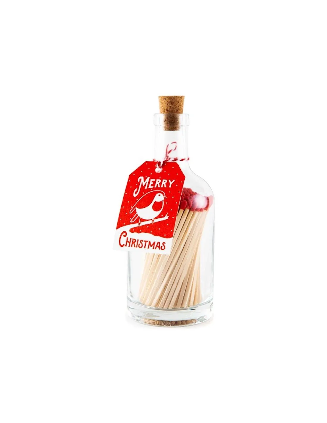La bouteille d’allumettes ‘Robin Merry Christmas’ de The Archivist est bien plus qu’un simple accessoire pour bougies ; c’est un véritable objet de décoration au charme intemporel. Présentant une illustration délicate et vintage d’un rouge-gorge festif, cette bouteille en verre apporte une touche de poésie à votre intérieur pendant la saison hivernale.