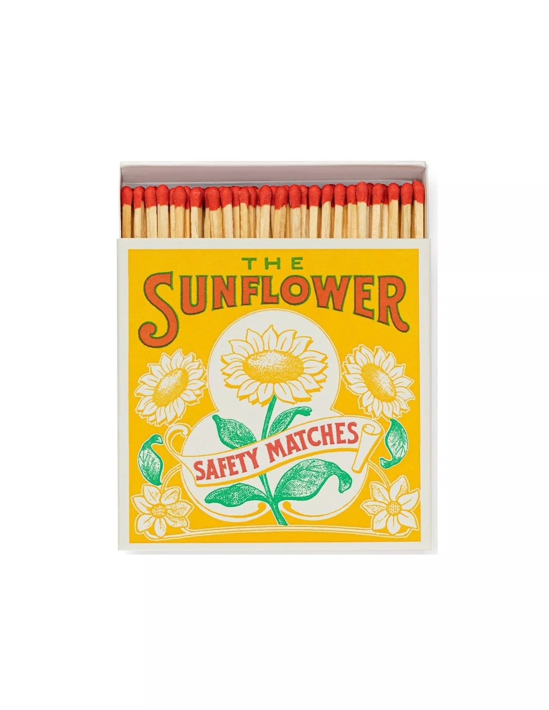 - Détails Visuels : Chaque boîte contient 125 allumettes de qualité supérieure dotées de têtes de couleur rouge éclatant, créant un contraste élégant avec le motif floral.