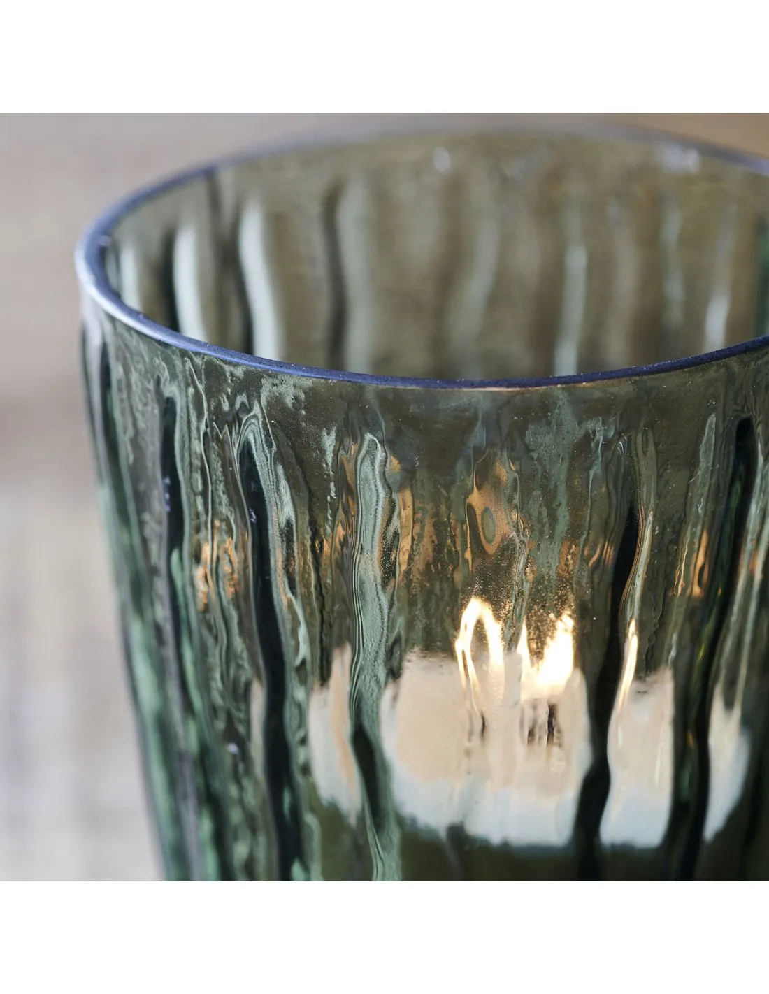 Le photophore Tinka se pare d’un coloris vert foncé profond, appliqué avec soin pour une finition homogène. Son design se caractérise par des rayures verticales qui structurent le verre et permettent de diffuser une lumière douce et tamisée, créant ainsi des jeux d’ombres élégants sur vos murs.
