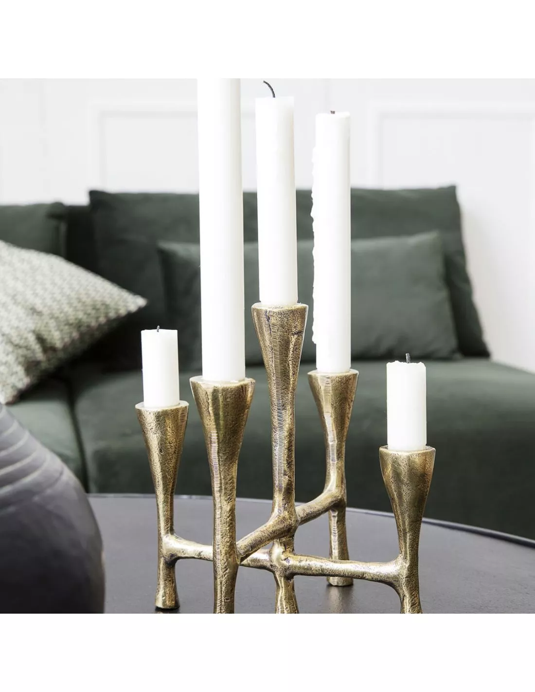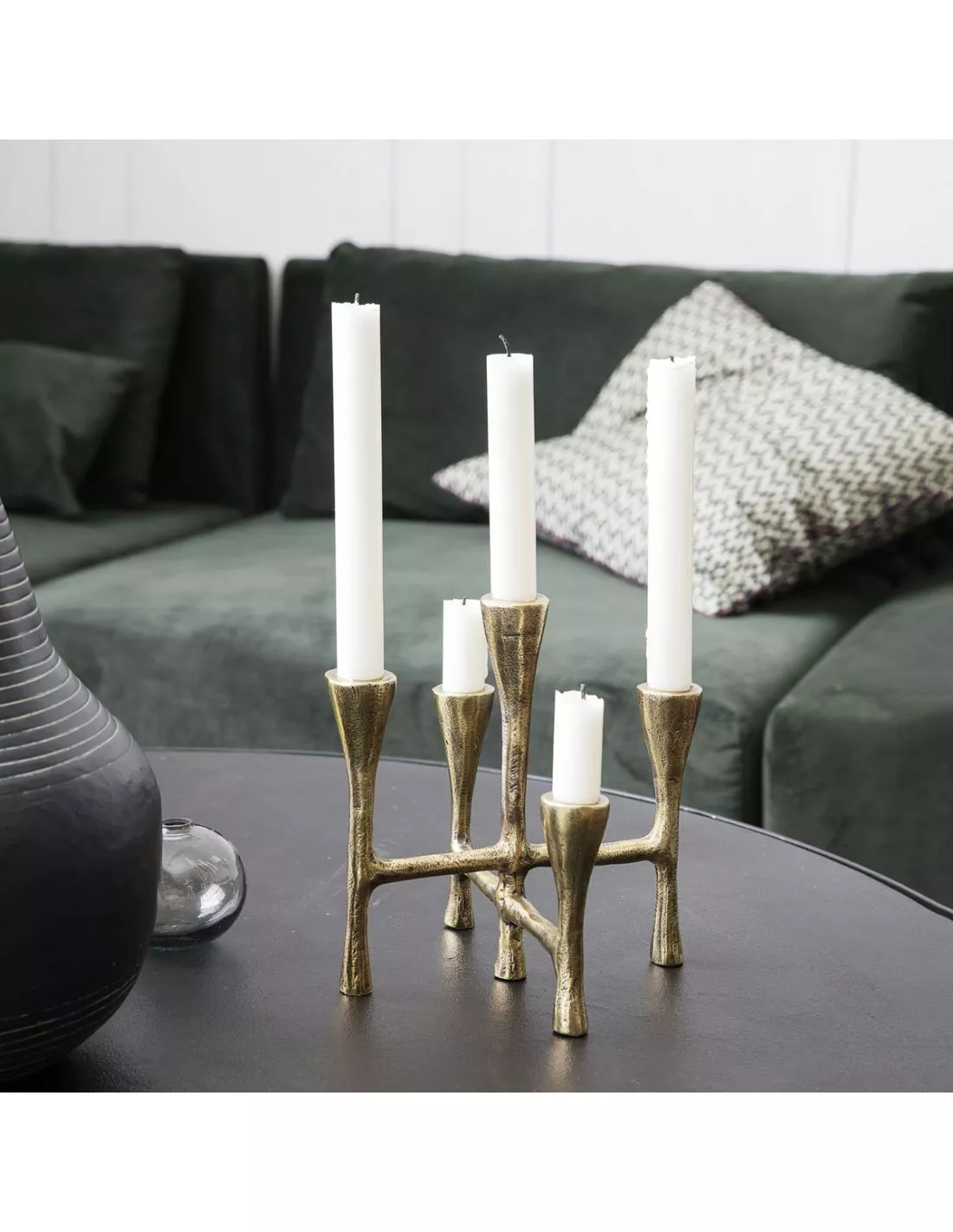 Conçu en aluminium avec une finition en laiton doré, le Tristy se distingue par ses lignes audacieuses et sa silhouette moderne. Pouvant accueillir jusqu’à 5 bougies cierges, il crée un éclairage multidimensionnel parfait pour une console, un centre de table ou une étagère.