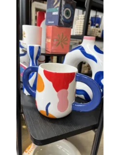 Que Rico Cache Pot Paulina – Blanc, Bleu et Rose Funky and Feliz Hand-Painted Planter
