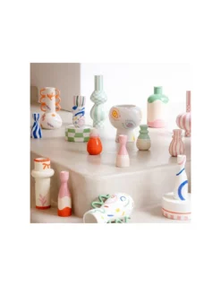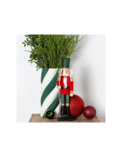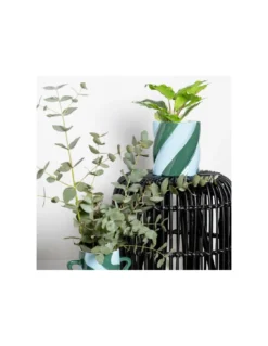 Vase Camilo Que Rico Vert et Blanc à Rayures – Design Artistique en Dolomite Peinte à la Main