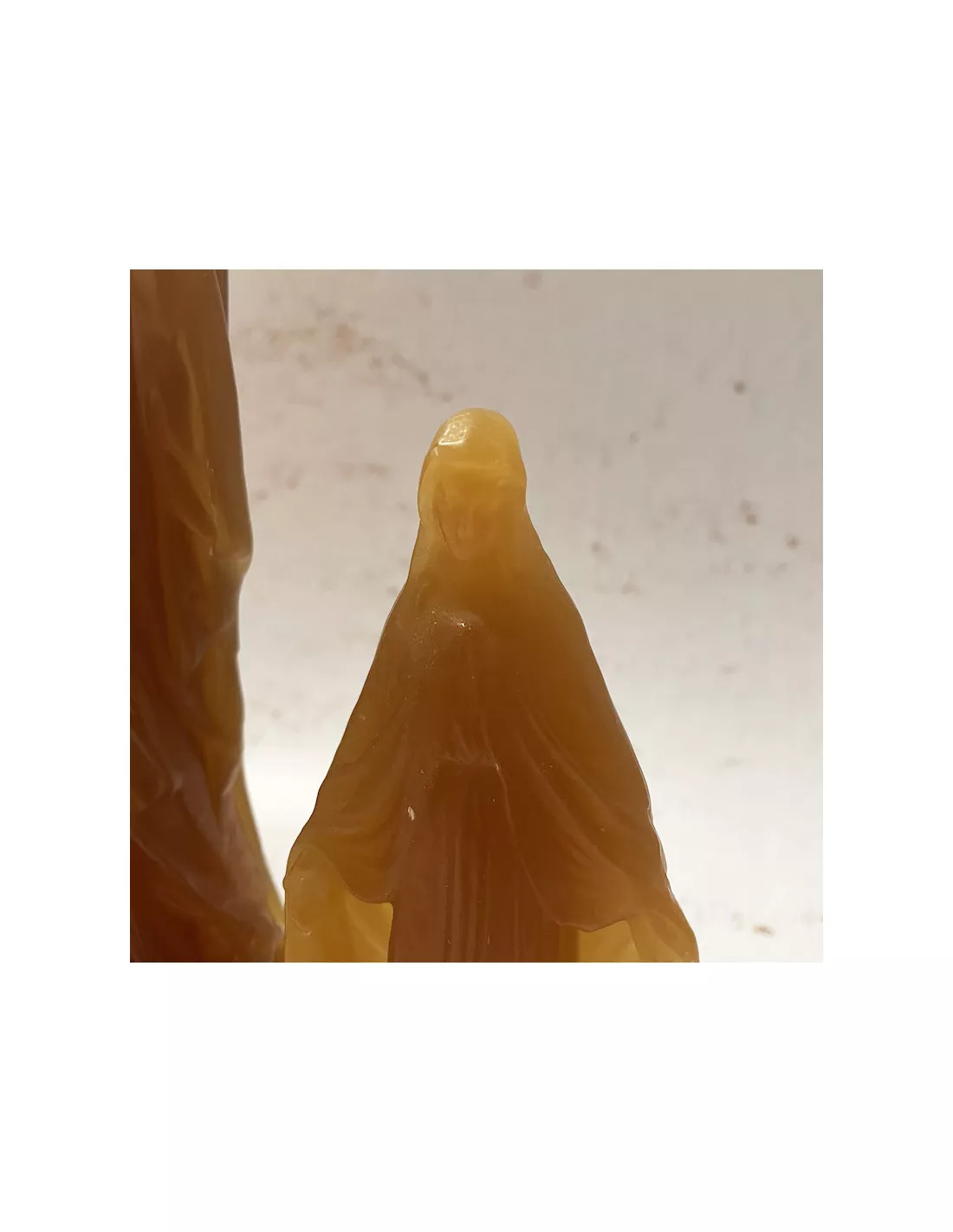 Vierge Miraculeuse de couleur vieille cire 15 cm fabriquée artisanalement en France par la Ciergerie des Premontrés, dernière ciergerie manuelle de France et entreprise.