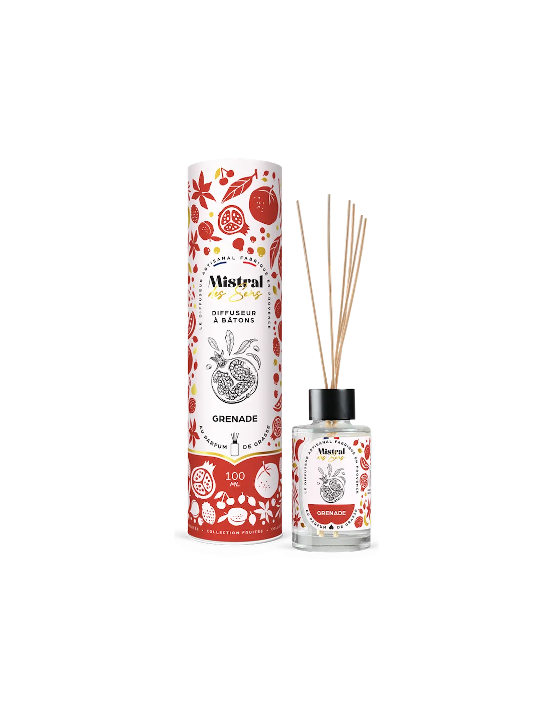 Apportez une touche fruitée, pétillante et élégante à votre intérieur avec le diffuseur de parfum d’ambiance à la Grenade. Conçu de manière artisanale au cœur des Alpes-de-Haute-Provence, ce diffuseur transforme l’atmosphère de votre maison en un véritable havre de paix provençal.