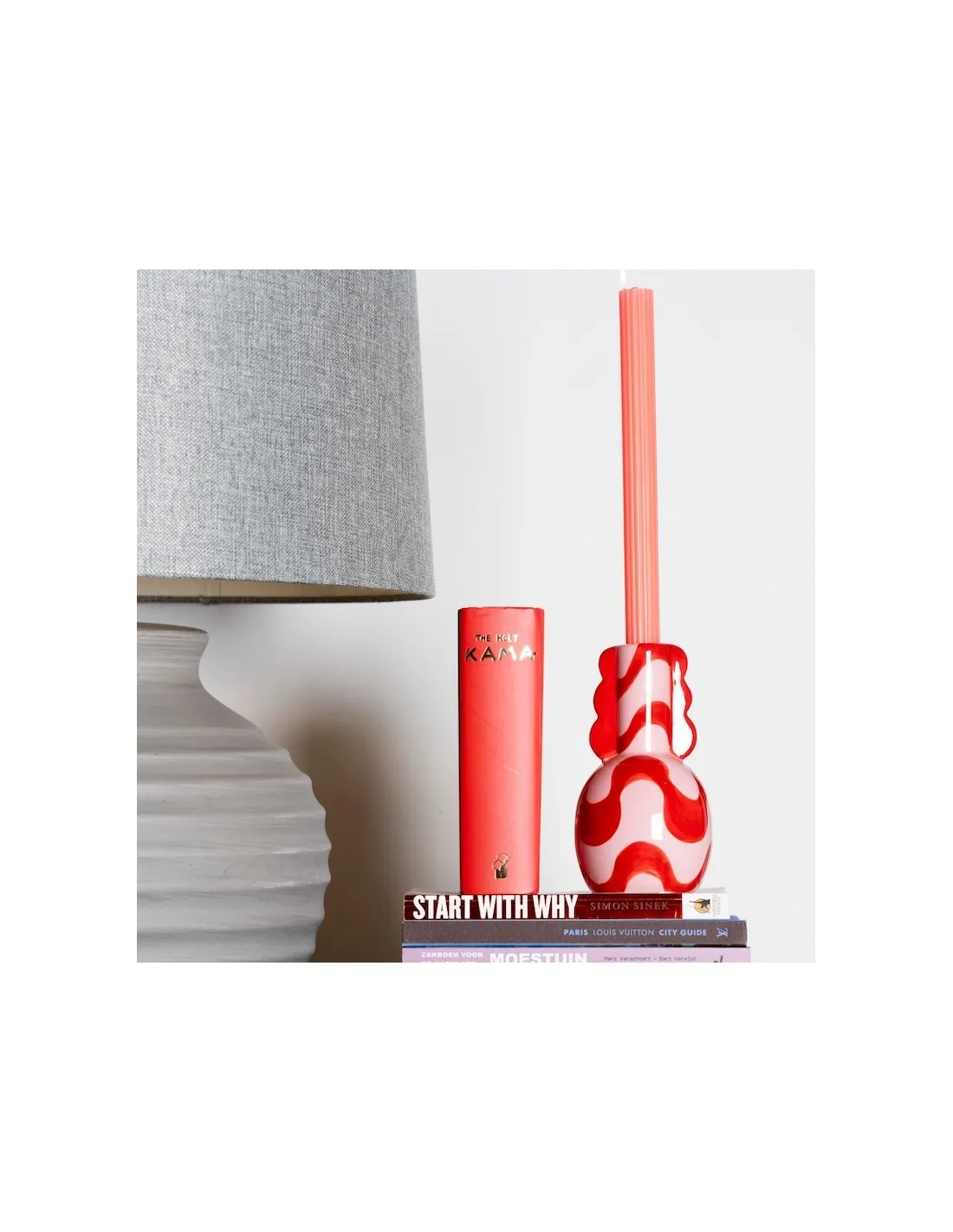 Each Adelina candle holder features a playful and bold red and pink colorway, meticulously hand-painted on high-quality dolomite. Because every piece is finished with a hand-applied glaze, your candle holder is a one-of-a-kind creation, showcasing organic patterns and a vibrant sheen that captures the light beautifully.