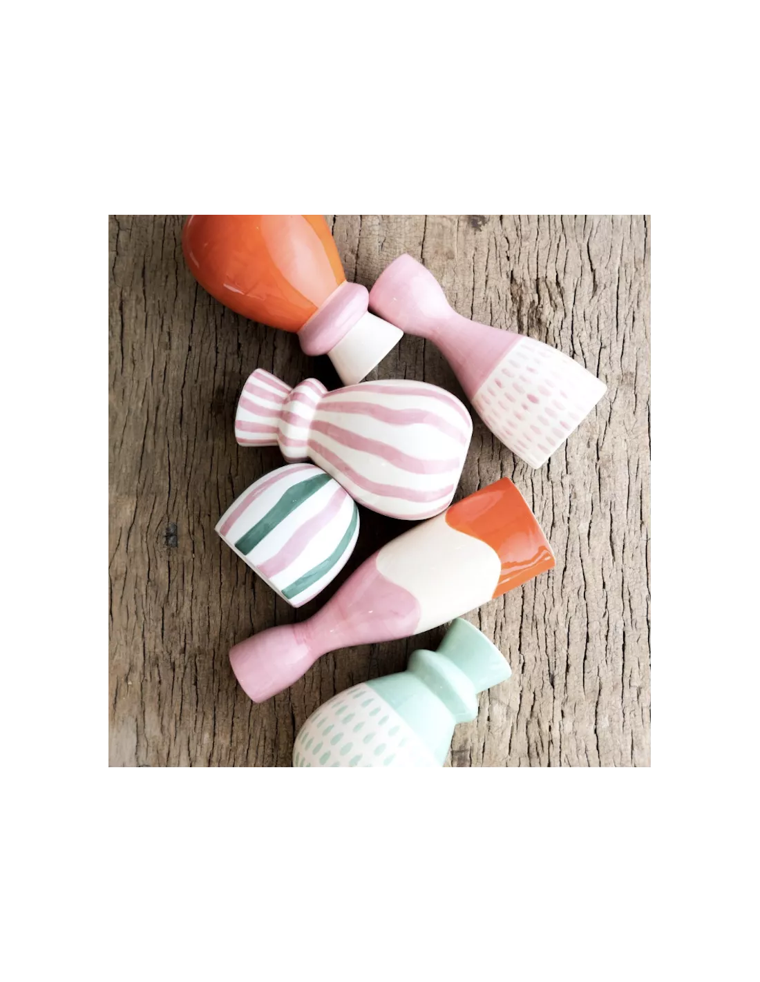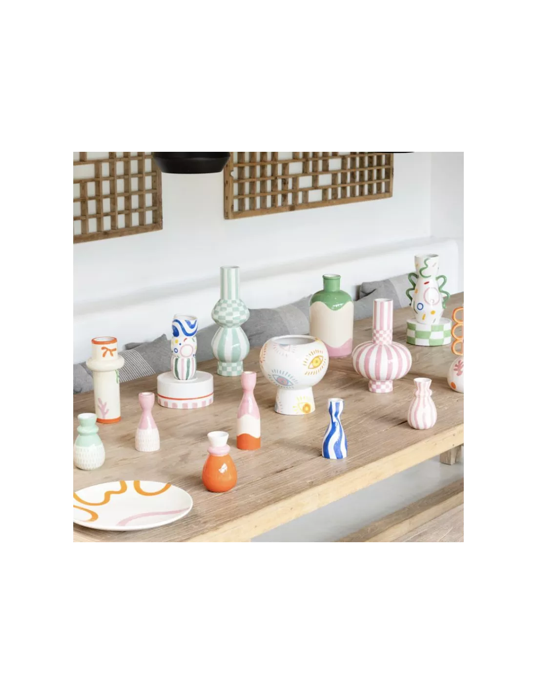 Conçu en dolomite de haute qualité, chaque bougeoir est entièrement peint à la main et émaillé avec soin. Cette technique artisanale garantit que chaque création est unique, avec des variations subtiles qui témoignent de l’authenticité de l’objet. Son design contemporain et ses finitions brillantes en font un objet de décoration incontournable pour les amateurs de style bohème-chic ou méditerranéen.
