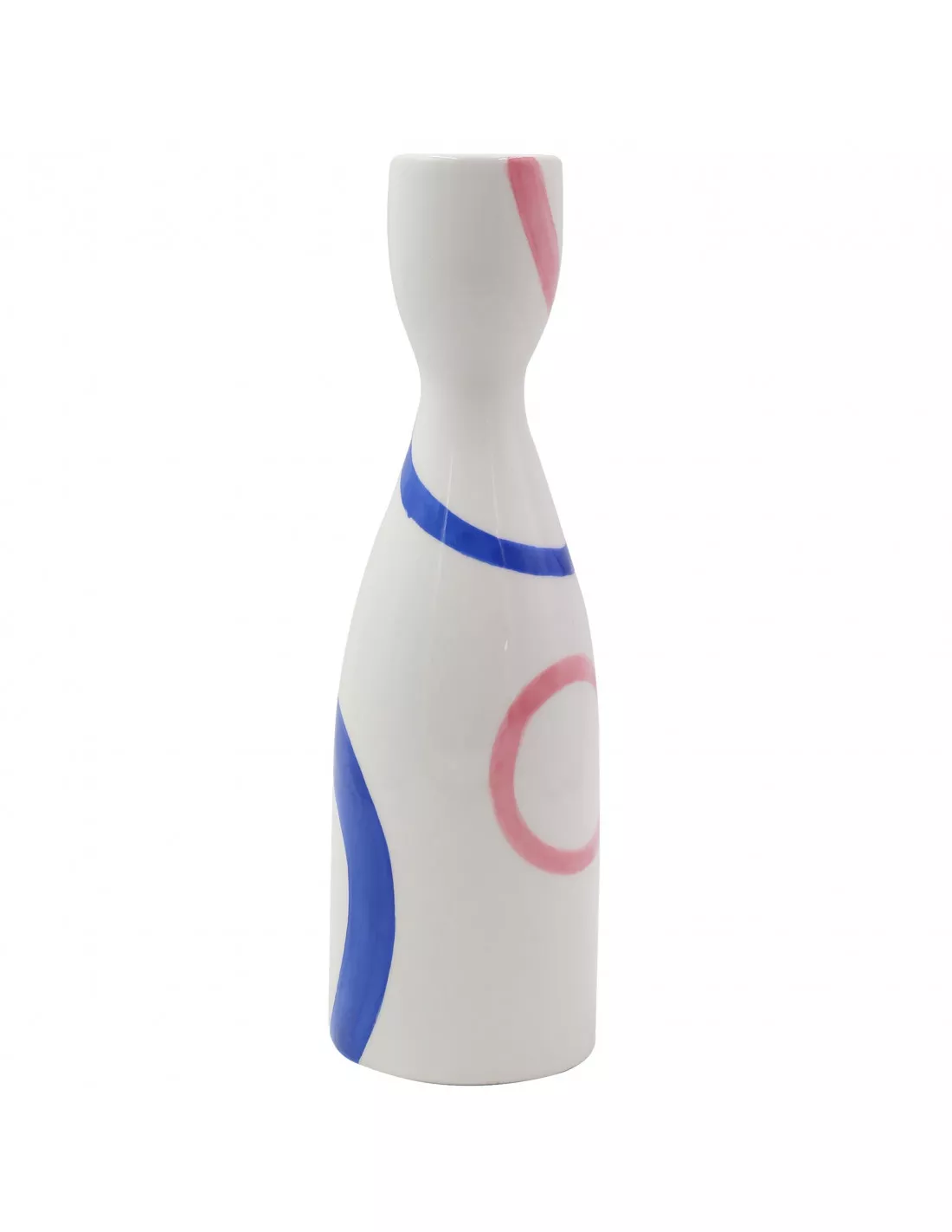 Ce bougeoir se pare de motifs abstraits peints à la main, mêlant des nuances de bleu azur et de rose délicat sur une base de dolomite blanc pur. Sa silhouette élancée et organique, protégée par un émail brillant, reflète la lumière de la bougie pour créer une atmosphère apaisante et chaleureuse. Chaque pièce étant réalisée artisanalement, les variations de couleurs garantissent un objet unique pour votre maison.
