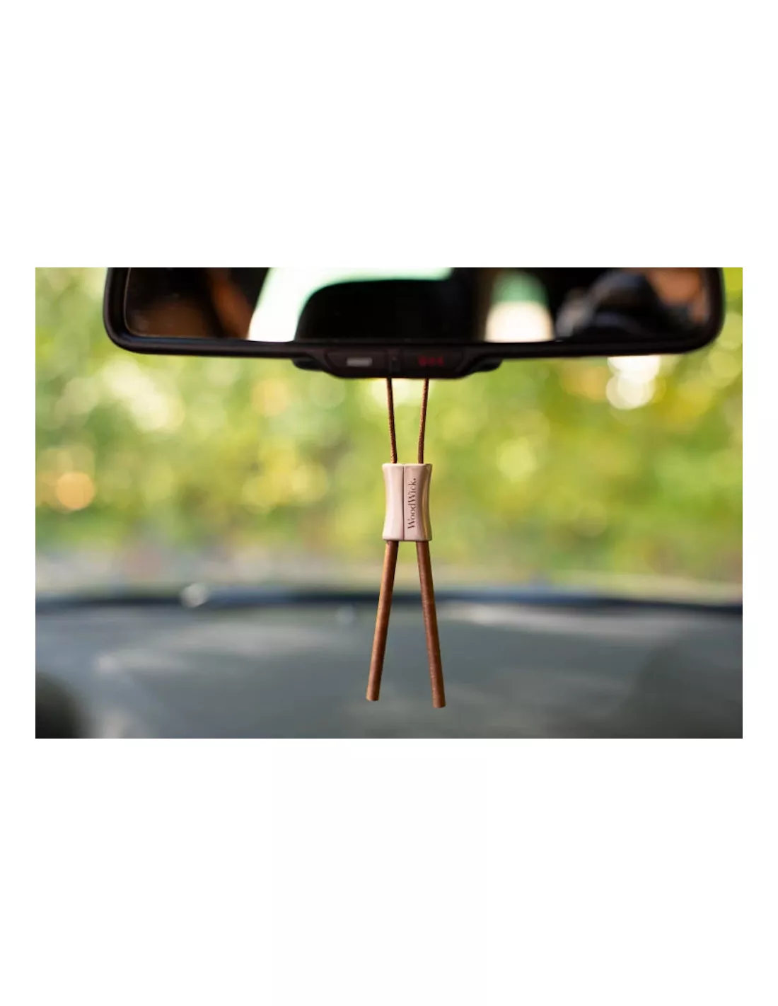 Suspendez les brins parfumés WoodWick à votre rétroviseur et profitez d’une diffusion continue de parfum dans votre voiture !