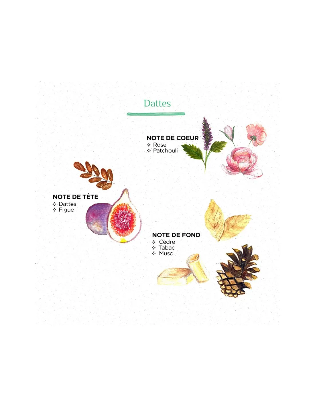 🌴 Parfum Dattes Majestueuses : Un souffle d’élégance inspiré des palmiers dattiers de Marrakech. Les notes sucrées et onctueuses de dattes se mêlent harmonieusement au patchouli, au bois de cèdre et aux accents profonds de tabac et de musc. Une composition olfactive gourmande, boisée et enveloppante qui évoque la chaleur et la richesse des oasis marocaines.