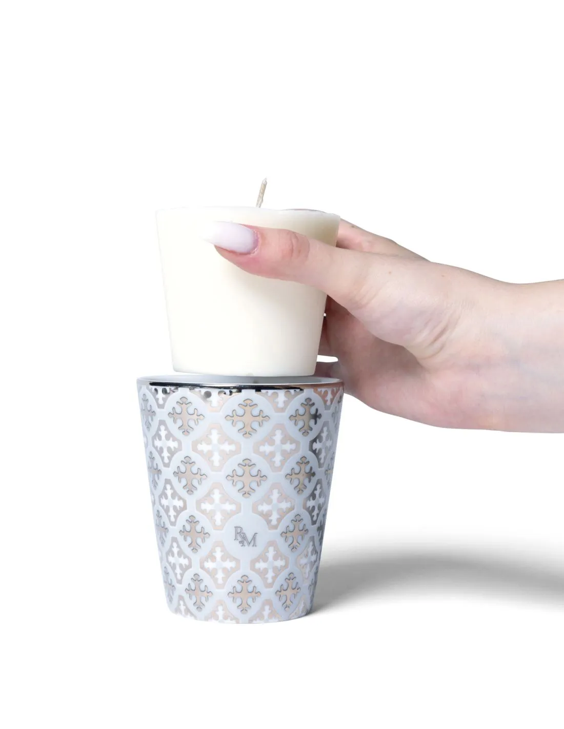 Rechargez votre timbale Rose et Marius avec la gamme de fragrances rares, réalisées en exclusivité pour Rose et Marius par les meilleurs parfumeurs de Grasse. La timbale en porcelaine fine de Limoges, avec des finitions en Or ou Platine, devient translucide une fois la bougie allumée ce qui en fait un véritable objet de décoration pour la maison.