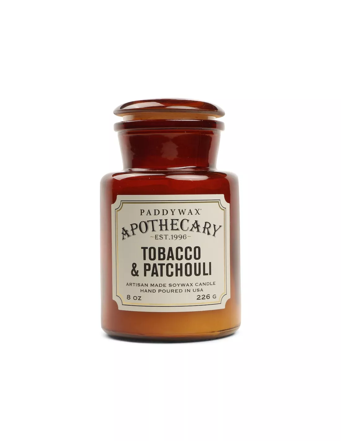 Une magnifique bouteille d’apothicaires, une cire de soja, une mèche en coton… Cela donne une bougie parfumée vintage pleine de caractère.